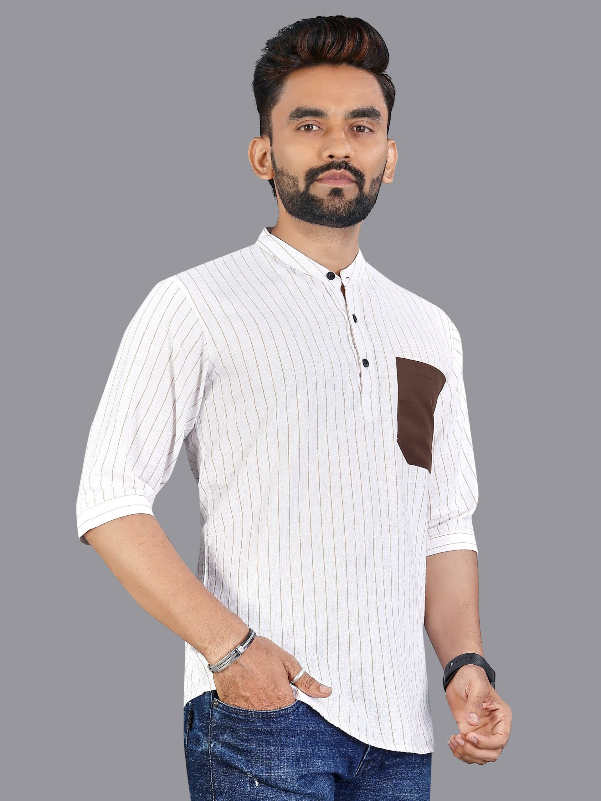 A men’s short kurta is a stylish and versatile traditional Indian garment that falls between the waist and mid-thigh. It is typically made from cotton offering comfort and breathability.