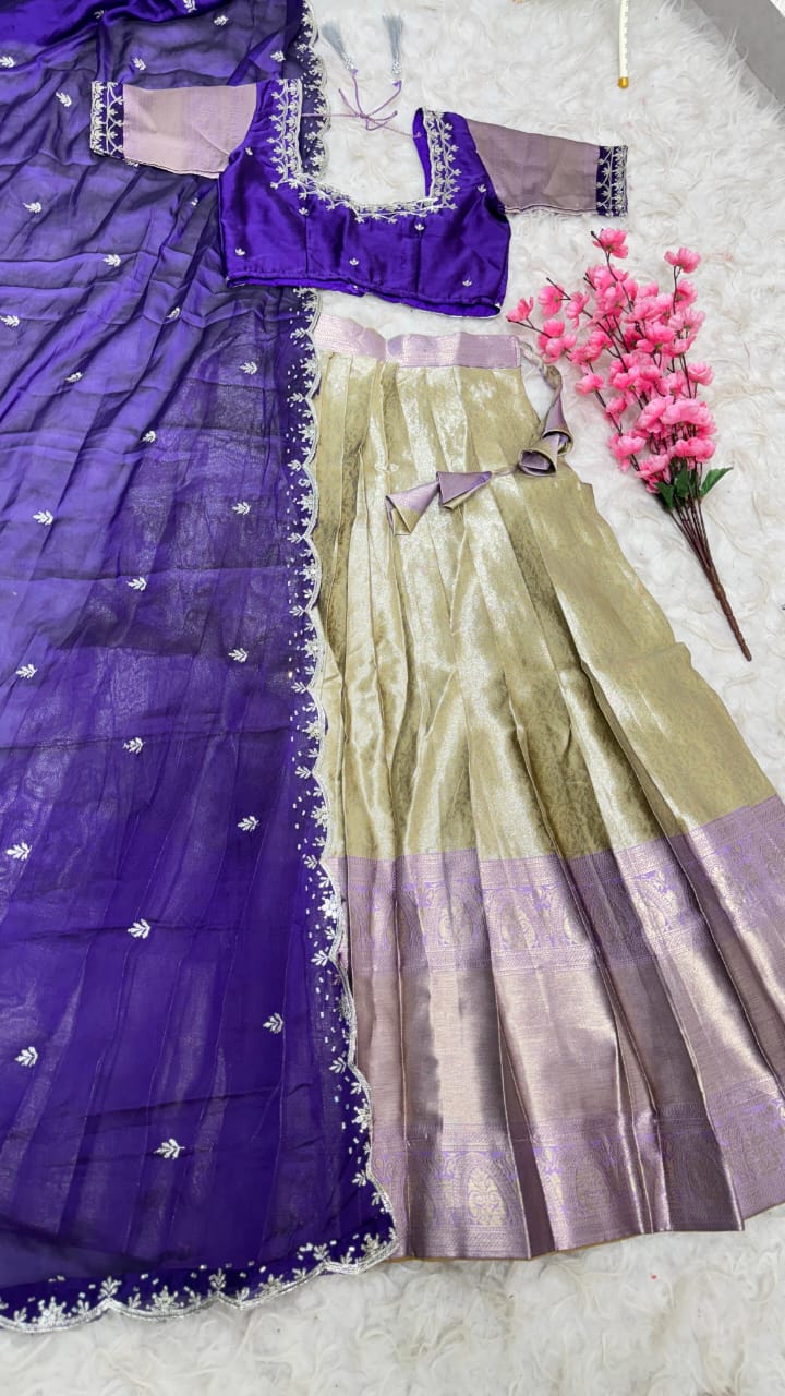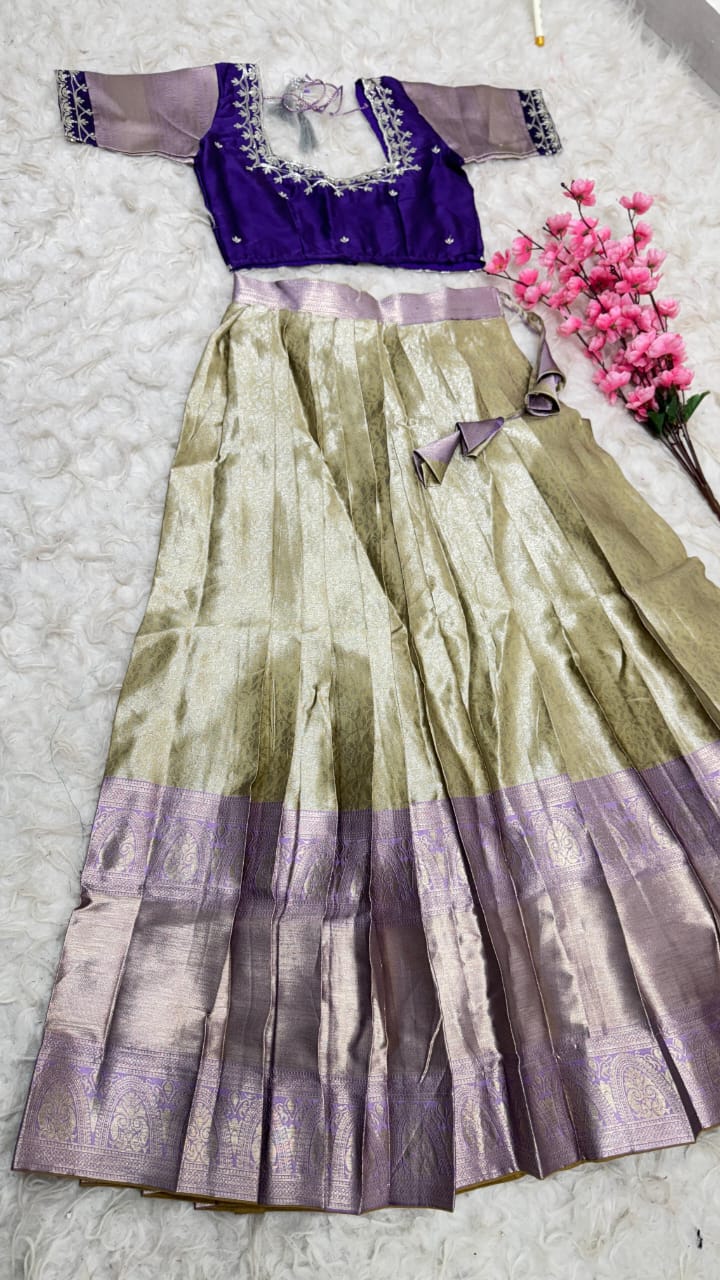 Launch New Exclusive Designer Premium Quality Pure Kanjivaram silk full stiched Lehenga With Full stiched Designer Maggam work blouse With Maggam work with Rich butti work with Handwork lace border dupatta which gives u totally Decent and Extraordinary look For this Festival Marriage Season